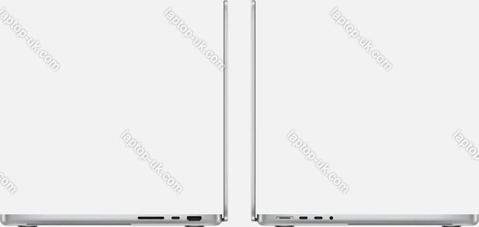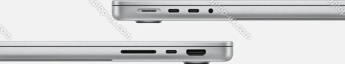 - 3x Thunderbolt 4 / USB4 with DisplayPort 1.4 (40Gb/s, PD-Out, power input PD-In), 1x HDMI 2.1, 1x 3.5mm audio jack, 1x SD Card, 1x DC-In Apple MagSafe 3 (power input)