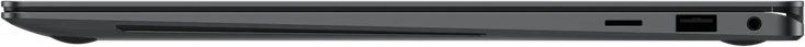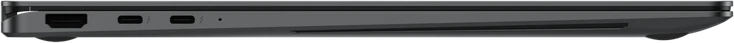 - 2x Thunderbolt 4 / USB4 with DisplayPort 1.4 (40Gb/s, PD-Out, power input PD-In), 1x USB-A 3.0 (5Gb/s), 1x HDMI 2.1, 1x 3.5mm audio jack, 1x microSD