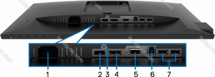 - 1x DisplayPort 1.2, 1x HDMI 1.4, 1x VGA (60Hz@1920x1080), 1x USB-B 3.0 (Upstream, 5Gb/s), 2x USB-A 3.0 (downstream, 5Gb/s), 2x USB-A 2.0 (downstream, 480Mb/s), 1x AC-In C14