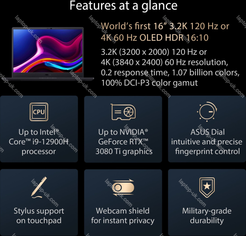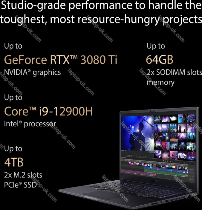 ASUS ProArt StudioBook 16 OLED H7600ZM-KV090X Mineral Black, Core i7-12700H, 16GB RAM, 512GB SSD, GeForce RTX 3060 – Pro Laptops UK | |
