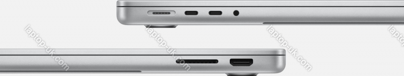- 2x Thunderbolt 4 (40Gb/s, mains connection, PD), 1x HDMI 2.1, 1x 3.5mm jack, 1x SD Card, 1x DC In Apple MagSafe 3