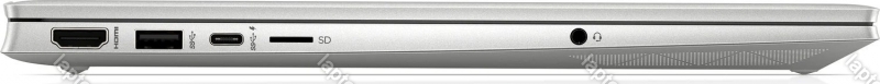 - 1x USB-C 3.1 with DisplayPort 1.4 (10Gb/s, mains connection, BC), 2x USB-A 3.0 (5Gb/s), 1x HDMI 2.1, 1x 3.5mm jack, 1x DC In hollow socket