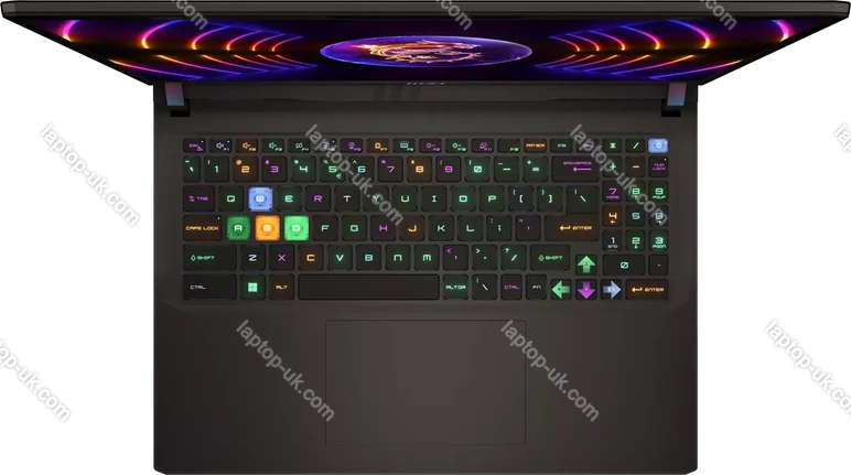 - Keyboard with UK-layout (individual keys RGB illuminated, keypad, Rubber-Dome), touchpad (131x82mm)