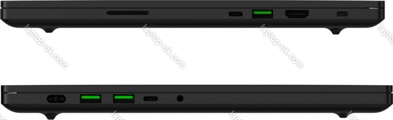 - 3x USB-A 3.1 (10Gb/s), 2x Thunderbolt 4 (40Gb/s, mains connection, PD), 1x HDMI 2.1, 1x 3.5mm jack, 1x SD Card (UHS-II), 1x Razer Power connector