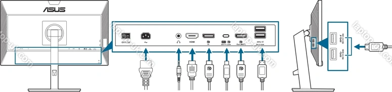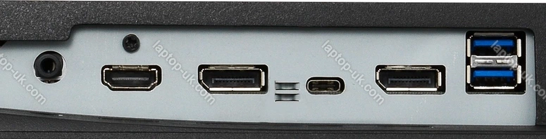 - 1x DisplayPort 1.2, 1x HDMI 1.4, 1x USB-C 3.0 with DisplayPort 1.2 (Upstream, 5Gb/s, PD-Out 65W), 4x USB-A 3.0 (downstream, 5Gb/s), 1x 3.5mm jack Line-Out, 1x DisplayPort-Out 1.2, 1x AC-In C14