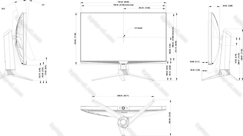 - 726.48x504.13x305.59mm, 726.48x440.84x95.03mm - without pedestal