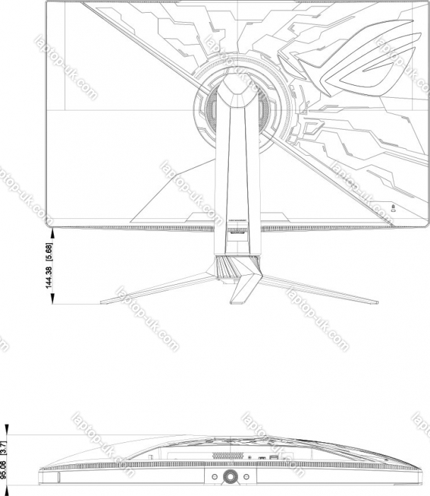 - slim bezel, mechanical keys with rotary knob, light sensor, tripod socket for webcam, security lock, Illuminated stand (RGB), Illumination on back side (RGB), HDCP 2.3, factory calibration (Delta-E <2), fan, additional Display (256x64, OLED)