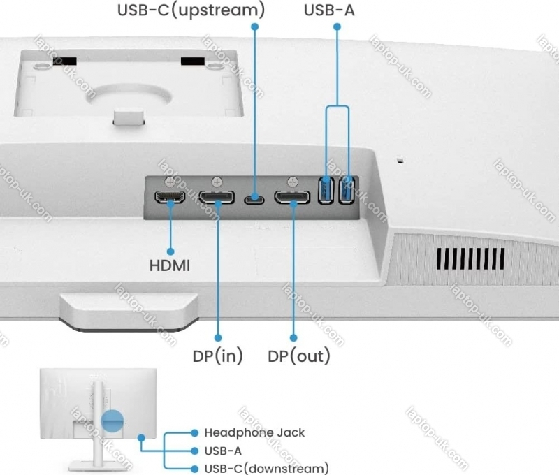 - 1x HDMI 1.4 (60Hz@2560x1440), 1x DisplayPort 1.2 (75Hz@2560x1440), 1x USB-C with DisplayPort 1.2 (75Hz@2560x1440), 1x DisplayPort-Out (daisy chain)
