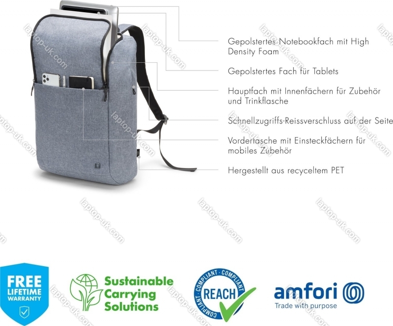 Dicota Laptop Backpack Eco MOTION 13-15.6", Blue Denim — Lowest UK price with fast free delivery and full warranty