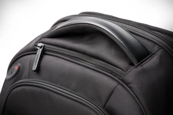 - Comfortable carrying handle, trolley strap for easy travel, dedicated tablet section for devices (up to 255 × 185 × 25 mm), RFID-protective compartment