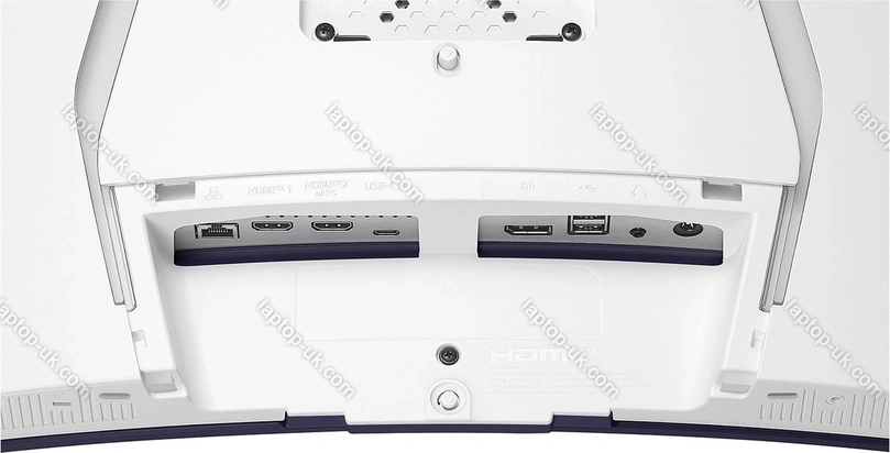 - 1x DisplayPort 1.4 (240Hz@3440x1440), 1x HDMI 2.1 (eARC, 240Hz@3440x1440), 1x HDMI 2.1 (240Hz@3440x1440), 1x USB-C 2.0 with DisplayPort 1.4 (Upstream, 480Mb/s, PD-Out 65W), 2x USB-A 2.0 (downstream, 480Mb/s), 1x 3.5mm jack Line-Out, 1x RJ-45 (downstream, 100Base-T), 1x DC In hollow socket