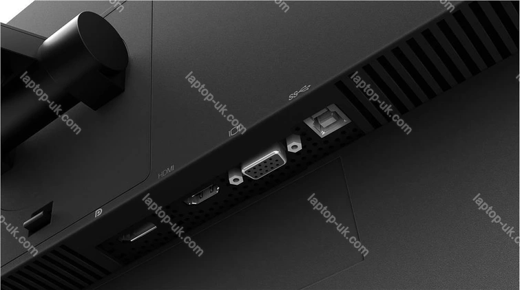 - 1x DisplayPort 1.2, 1x HDMI 1.4, 1x VGA (60Hz@1920x1200), 1x USB-B 3.0 (Upstream, 5Gb/s), 4x USB-A 3.0 (downstream, 5Gb/s), 1x 3.5mm jack Line-Out, 1x AC-In C14