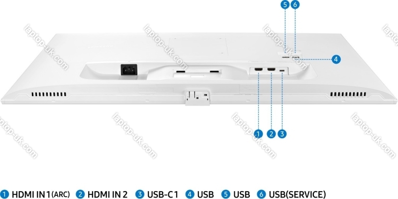 - slim bezel, USB-C Power Delivery (65W), D-pad, light sensor, security lock, Wi-Fi 5 (WLAN 802.11a/b/g/n/ac), Bluetooth 4.2, DLNA, remote control, operating system (Tizen)