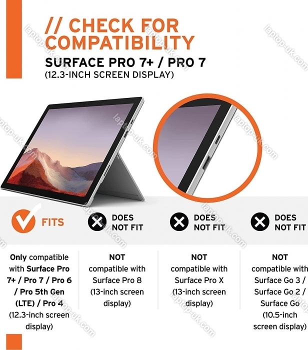 - Microsoft Surface Pro 7+, Microsoft Surface Pro 7, Microsoft Surface Pro 6, Microsoft Surface Pro 5, Microsoft Surface Pro 4