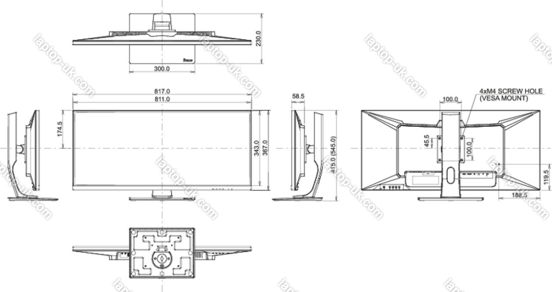 - 817x415x230mm, 817x367x59mm - without pedestal